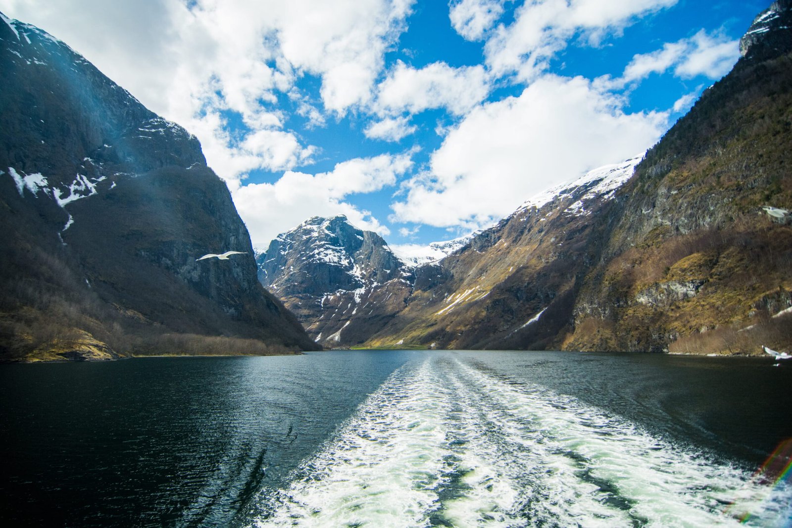 Het bekendste fjord in Noorwegen is het Geiranger Fjord, dat komt onder andere door de vele watervallen die je tegen komt als je er met een boot doorheen vaart. Maar toch vond ik het Gudvangen fjord net zo mooi! Je komt wat meer bergen tegen. Bij beide fjords kan je het beste met een boot of kayak er door heen varen, een super mooie ervaring waar je écht alleen natuur ziet.